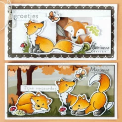 Here comes the cute fox! In his adventures with nature and the Fall season. Includes three different foxes, fall leaves, a butterfly, a snail and other extra elements to complete your cards and projects. These stamp designs from Marianne Design come with matching cutting dies. Stamp the Eline’s Animal design and easily cut out the image with the die, lots of extra possibilities.